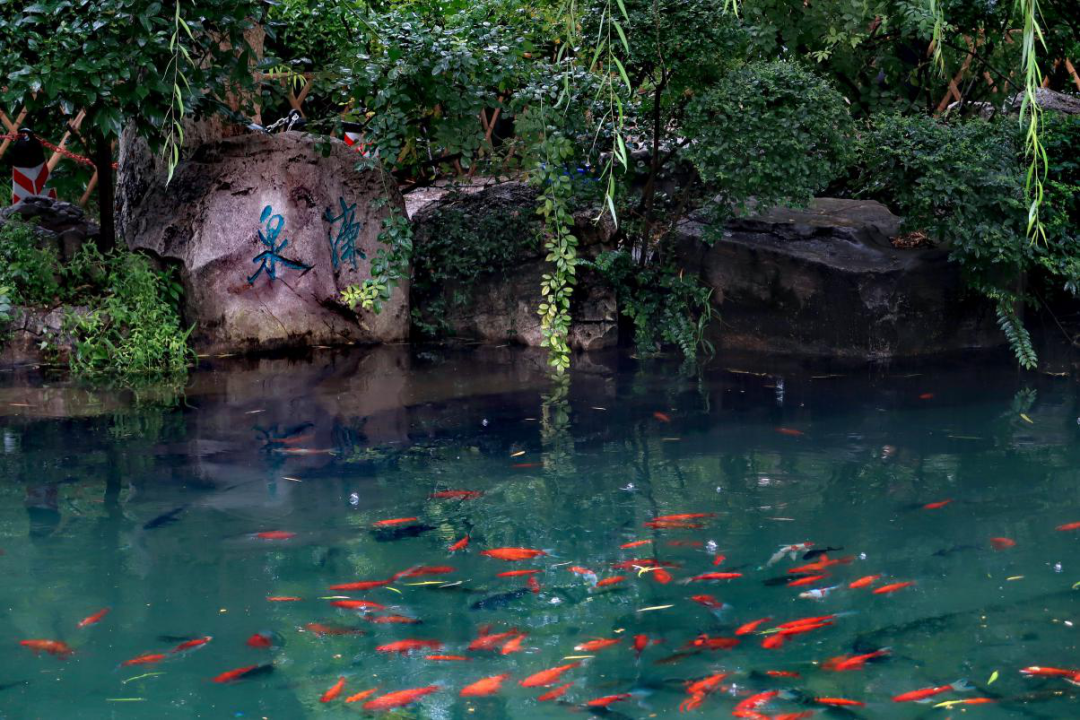 五龍潭園區內西北隅的濂泉,泉水平靜又清澈見底,雖沒有趵突泉“水涌若輪”的磅礴氣勢,但無數涓涓細流、串串珍珠不間斷地由池底諸多小孔中涌出,正合“中絕小水”之意。泉池上建有“濂廊”,廊中有楹聯一副:濂泉清明鑒廉仕,綠煙濃蔭惠黎民。